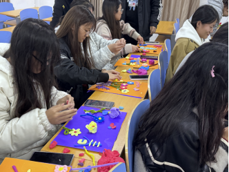 活动现场,同学们巧用黏土、彩纸、扭扭棒等材料,将黏土与扭扭棒组合成娇艳花朵,或用黏土塑造艺术字样,一件件充满巧思的作品接连诞生,充分展现了大家丰富的想象力与创造力。同学们沉浸创作,现场气氛热烈。创作结束后,同学们相互欣赏作品、交流心得,不仅提升了动手能力,还增进了同学情谊。