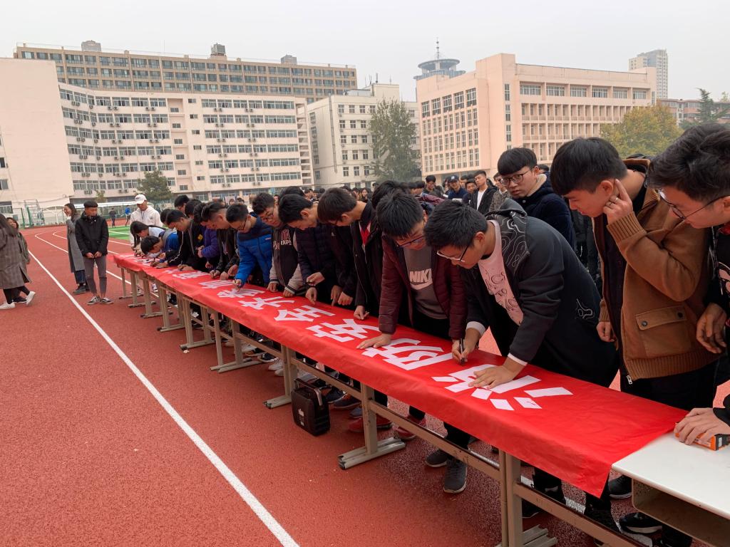 2018年11月13日下午,水利工程系在运动场举行了“消防安全齐参加,预防火灾靠大家”消防安全签字活动。系党总支书记李文林,全体学管老师及400余名学生参加活动。