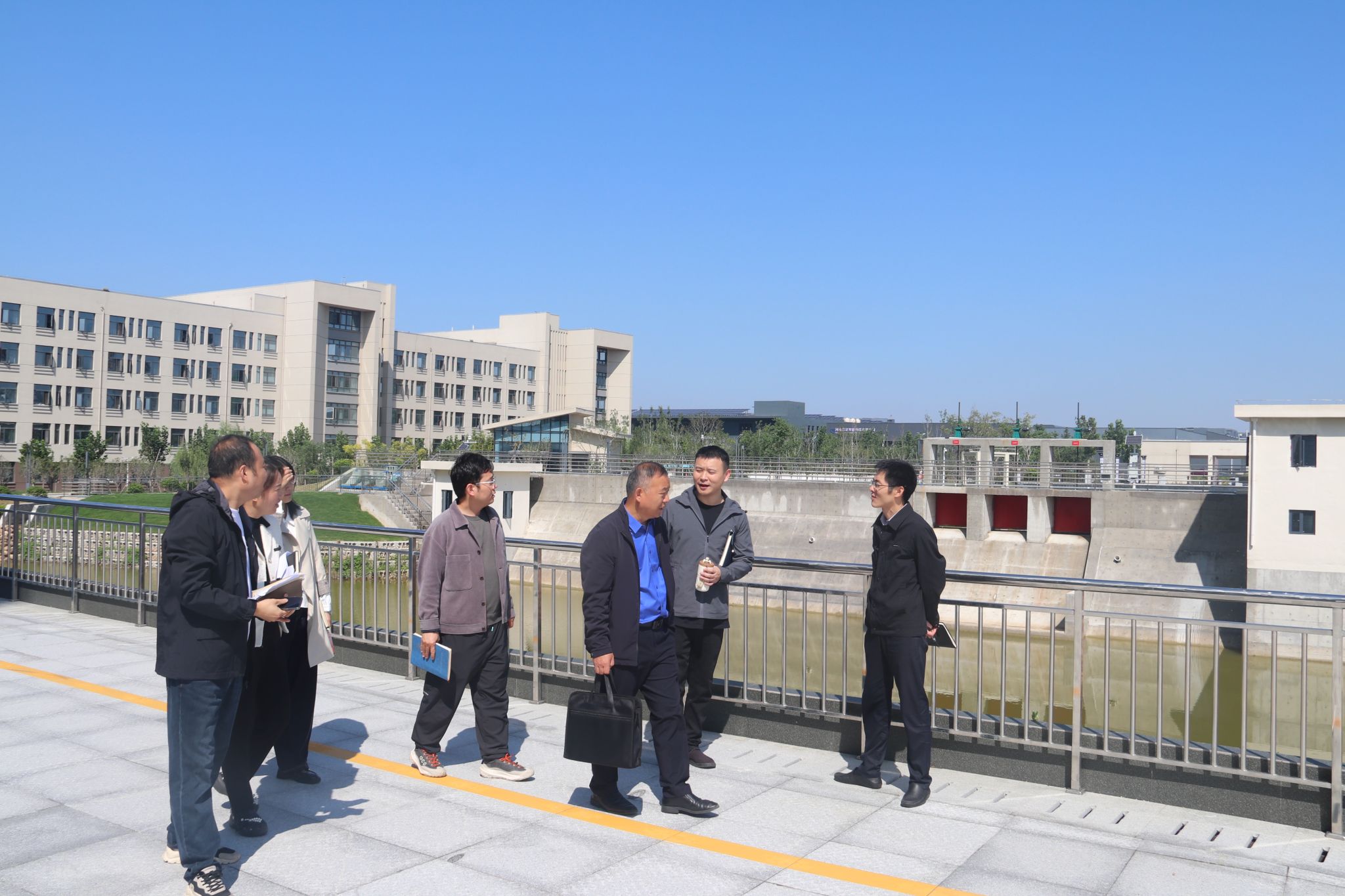 会后,在邢芳院长的陪同下,生态环境和城市管理局的嘉宾们实地参观了我校水利水电枢纽工程综合仿真实训基地、水利水电工程虚拟仿真实训中心等实训基地建设。各位嘉宾对我校先进的实训条件与建设成果给予高度评价,并就未来的深化合作与基地发展提出了宝贵建议。