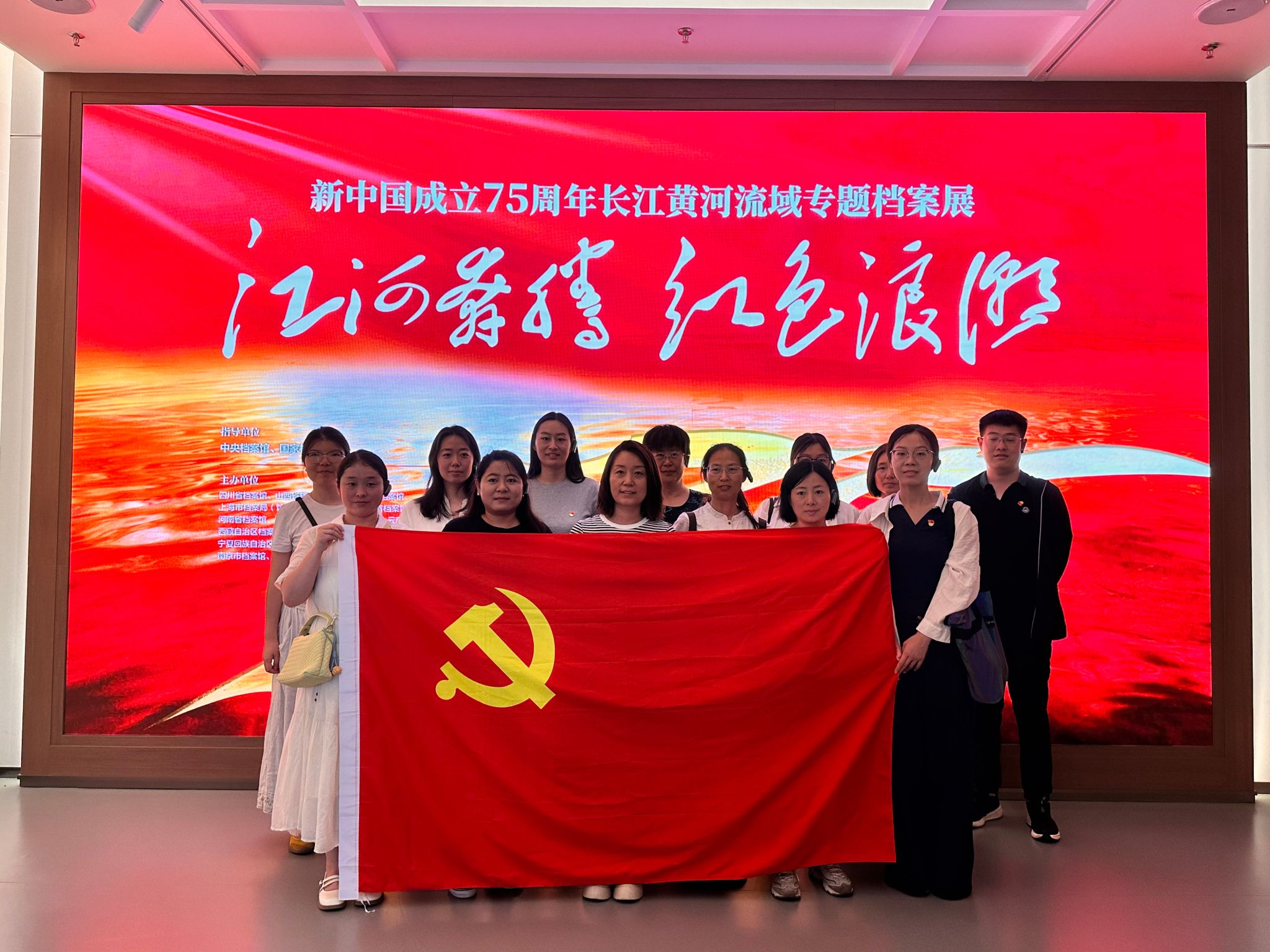 为庆祝建党 104 周年,深入学习党史,传承红色基因,2025 年 7 月 1 日,太阳成集团tyc33455ccww党总支书记张翼、副书记宋洁率学管队伍党员、学生入党积极分子及国家级职业教育教师创新团队成员,前往河南省档案馆参观 “江河奔腾、红色浪潮”—— 新中国成立 75 周年长江黄河流域专题档案展。