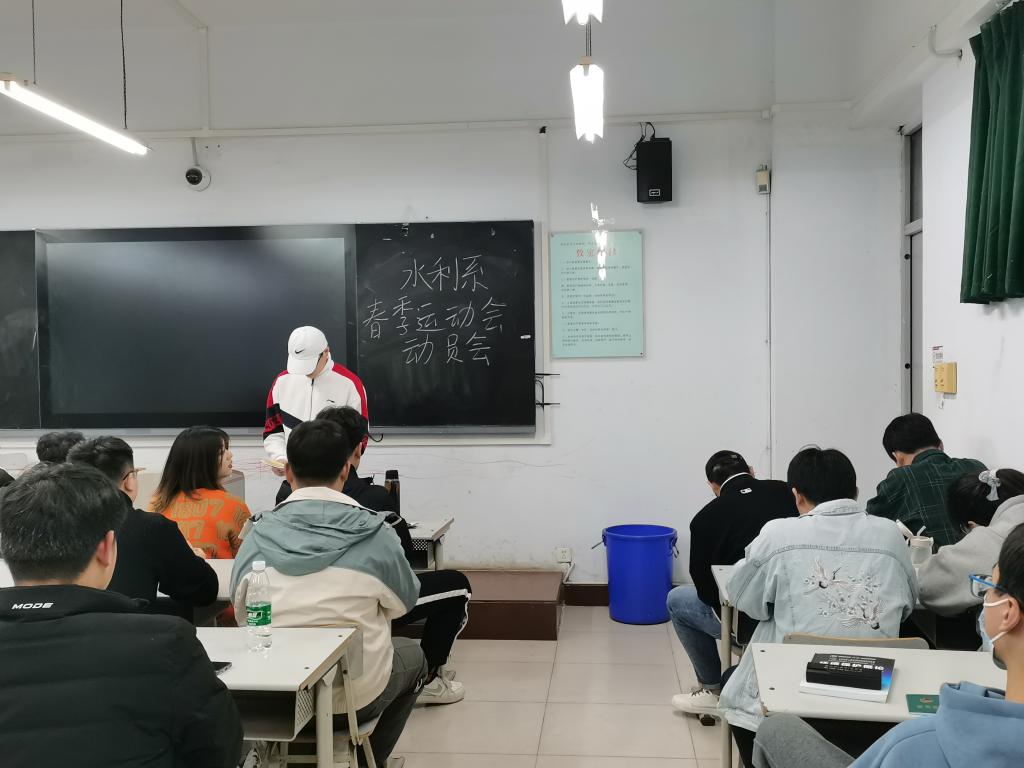 为充分调动同学们的积极性,保证运动会期间各项工作有序进行,3月16日晚,水利工程系在南教302教室召集各班班长及体育委员举行了2021年春季运动会动员大会。
