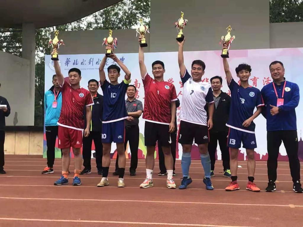 5月16日,由河南省教育厅主办,华北水利水电大学承办,河南省学生体育总会足球协会、河南省学生体育总会高校分会执行协办的河南省大学生第三届“五人制”足球比赛在华北水利水电大学落下帷幕,本次比赛共有来自全省的70多支队伍900多名运动员参加。我系19水电班徐梦柯、代琳创、陈佳琪;19造价1班周美霖;20水文1班牛印;20水建1班王景逵;20道桥2 班郭士峰7位同学经过学校选拔后参与此次比赛。经过体育教学部老师有效的专业指导和同学们为期1个多月的刻苦训练,最终在本次比赛中我校足球队斩获女子组第三名、男子组第六名的历史最佳成绩,展现了同学们积极向上的精神风貌。