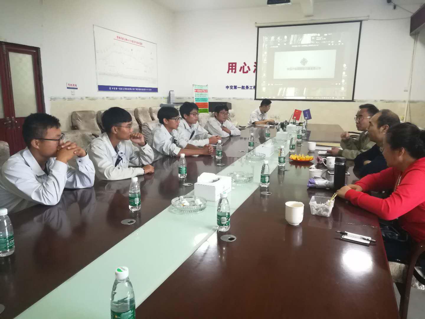 在项目部,我院教师与项目负责人及部分实习学生进行了深入交流。了解了中交第一航务工程局有限公司的雄厚实力及我校学生目前的生活、学习及以后的发展情况;并就学生就业、专业教学改革、实习基地建设等方面进行了探讨协商,为双方的进一步合作奠定了基础。