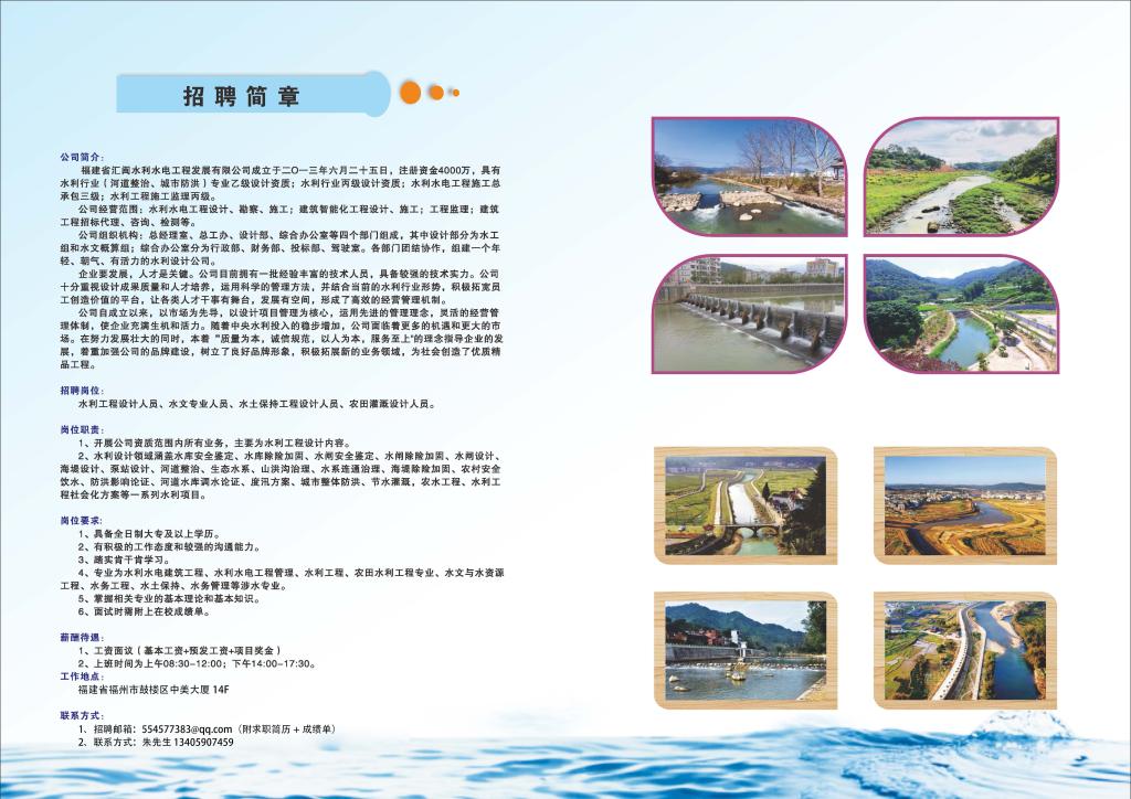 福建省汇闽水利水电工程发展有限公司招聘简章